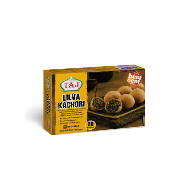 Taj Heat & Eat Lilva Kachori – 600g | 20 Pieces of Handmade Spiced Pigeon Pea Snacks