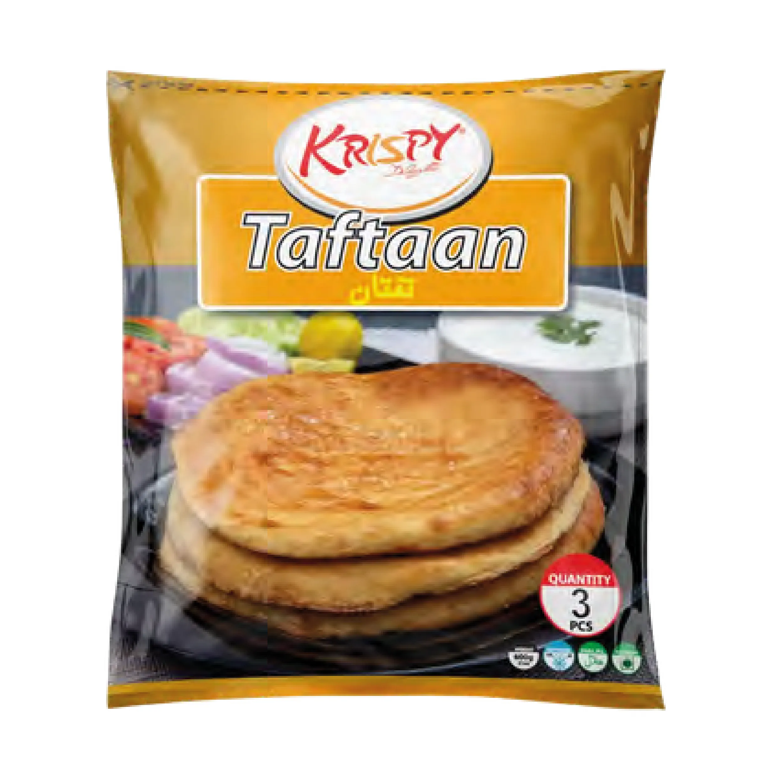 Krispy Taftaan is a traditional South Asian flatbread known for its soft texture and lightly golden crust. Prepared using authentic baking methods, this delicious bread offers a slightly rich and fluffy interior that pairs perfectly with a variety of dishes. Taftaan is commonly enjoyed with curries, kebabs, and traditional gravies, making it a staple in South Asian cuisine. Convenient and ready to heat, it can be warmed quickly for a fresh and satisfying meal. Each pack contains 3 pieces of Krispy Taftaan, bringing the authentic taste of traditional Pakistani bread to your dining table.