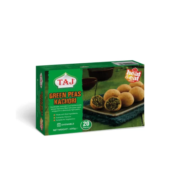 Taj Heat & Eat Green Peas Kachori – 600g | 20 Pieces of Handmade Spiced Pastry Snacks